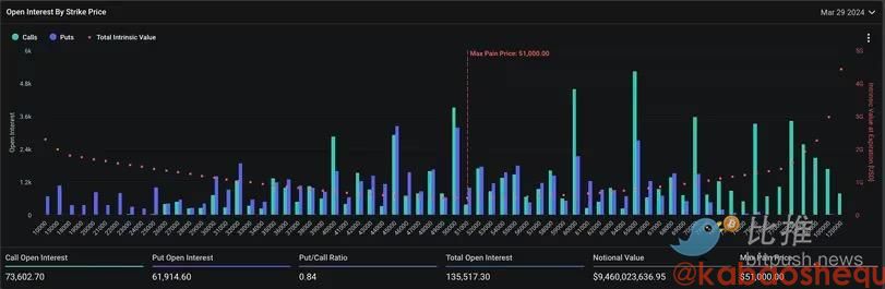 按照约 70,000 美元的市场价格计算,价值 39 亿美元的比特币期权将在价内到期,这占待结算季度未平仓合约总额 95 亿美元的 41%。同样,ETH 季度未平仓合约总额 57 亿美元中的 15% 将在价内到期。