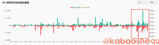但对应市场,与稳稳的现货持有者不同,价格的动荡让合约交易者又爱又恨。从Coinglass 的比特币爆仓图表可以看出,从2月26日开始,多空双爆现象贯穿了本次快速上涨期间。